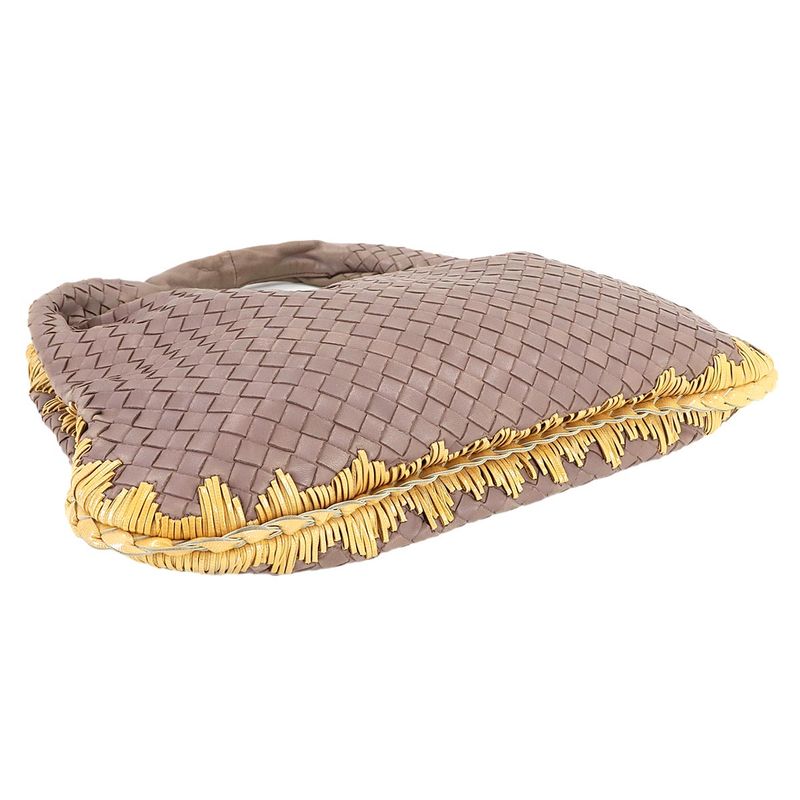 Bottega Veneta Intrecciato Hobo One Shoulder Bag Leather Purple Silver Hardware