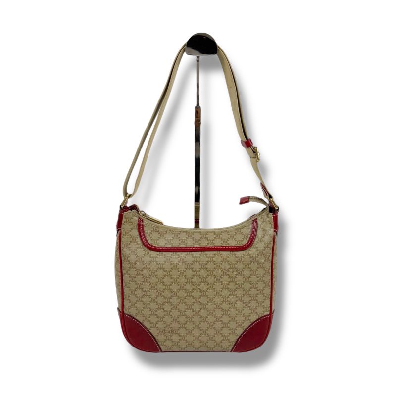 Celine Macadam Pattern One Shoulder Bag Beige Red Triomphe Shoulder Hobo Soho