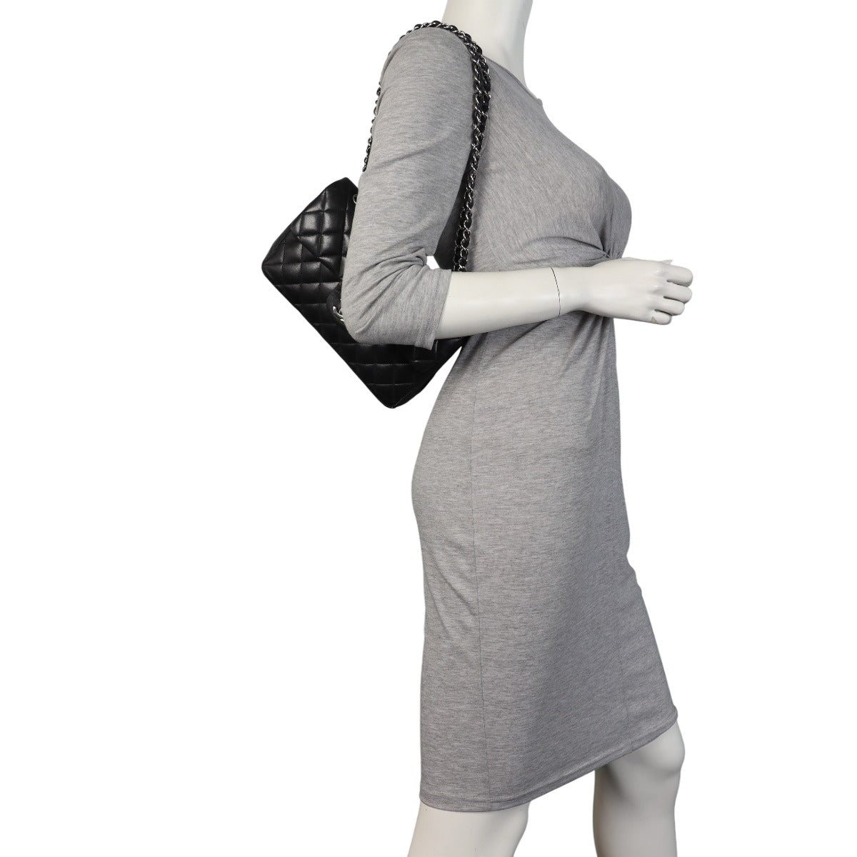 The Chanel Classic Double Flap Small bag, crafted from luxurious lambskin leather with chic hardware, embodies timeless style and elegance, making it the perfect accessory for any event.