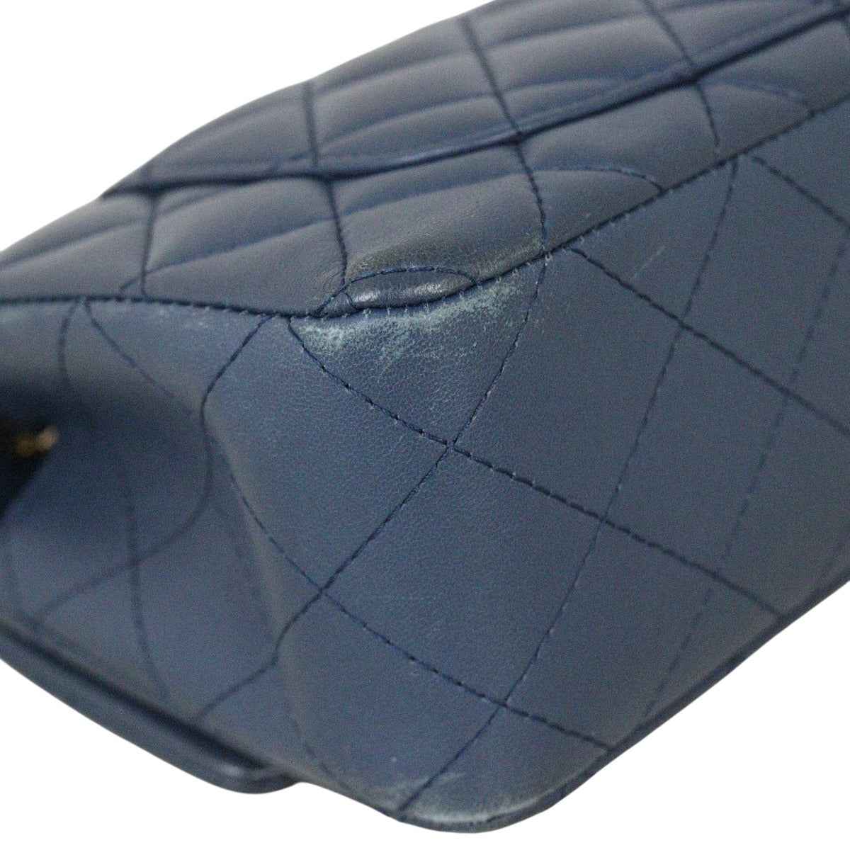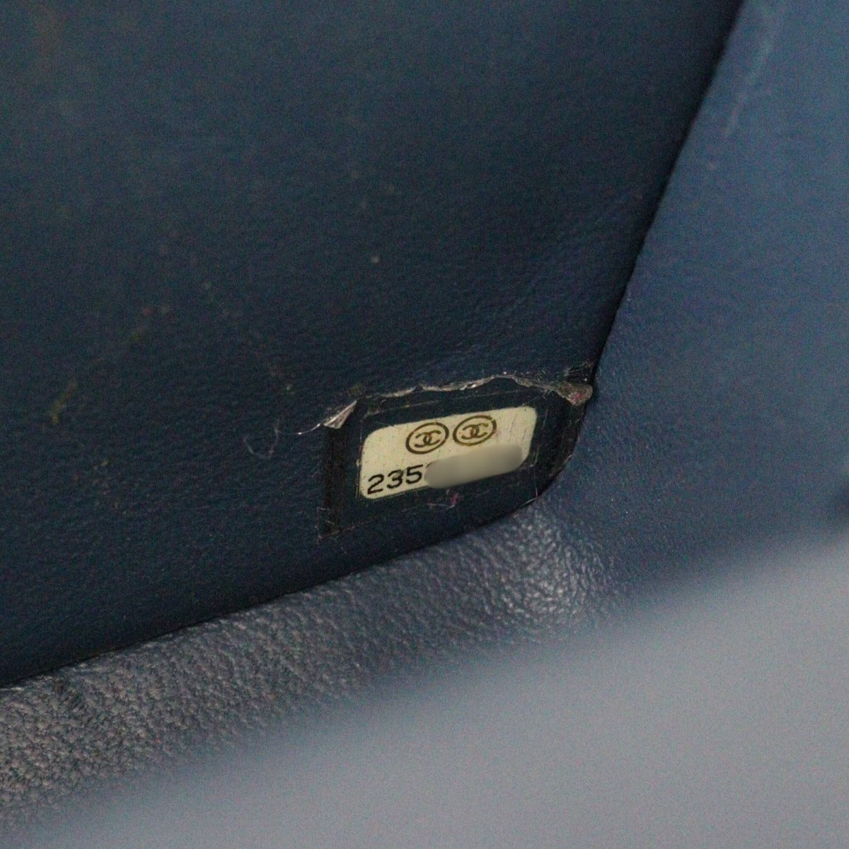 Colour/Material: Navy blue lambskin leather.