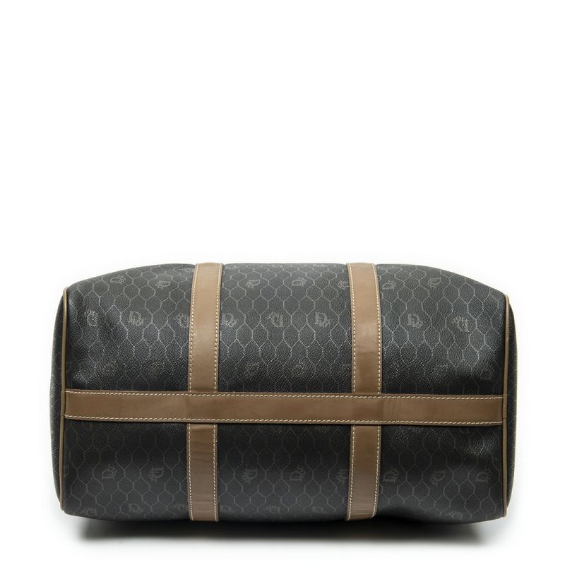 Dior Vintage Small Travel Boston Dark Gray Brown Honeycomb Canvas