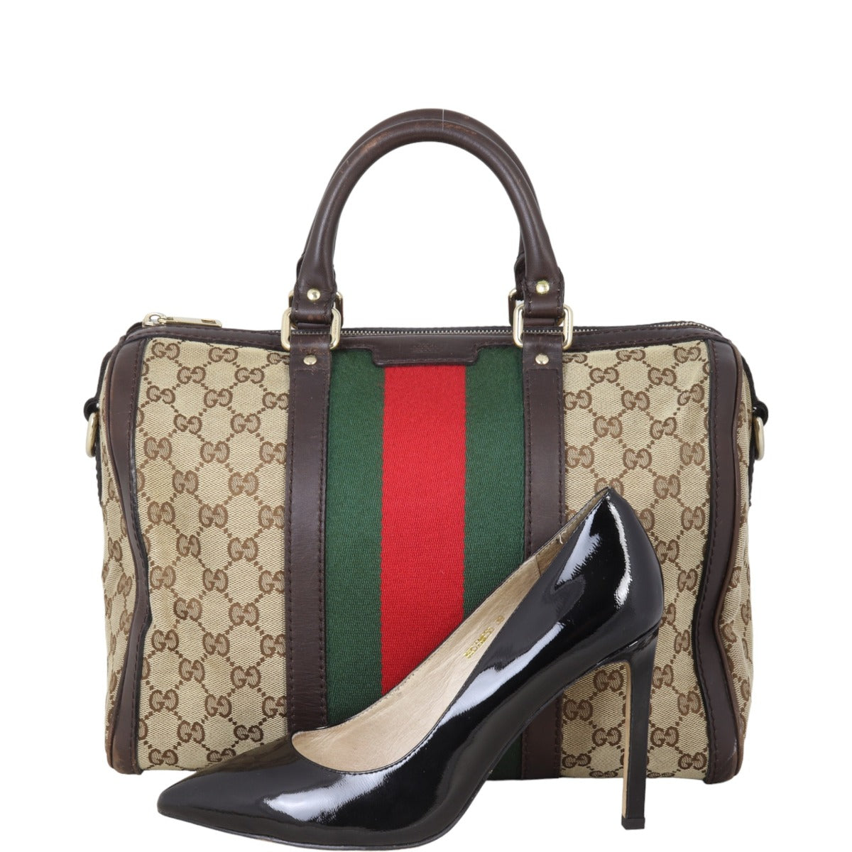 When it comes to creativity and innovation, nobody else does it like Gucci. The Gucci Vintage Web Original GG Boston Bag is a striking manifestation of just that. Made from the iconic GG canvas and featuring red and green web detailing, this bag will ensure you stand out from the crowd. With more than enough room for your essentials, this versatile bag is sure to add oomph to any day-to-day ensemble!